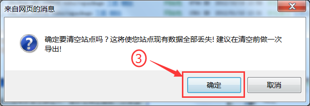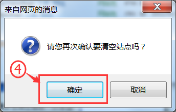3. 如图2.3所示,弹出再次确认对话框,点击“确定”,即可清空站点。