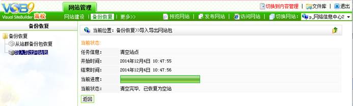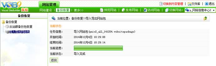 7. 界面显示如图4.7所示状态时,表示站点备份包导入完成。