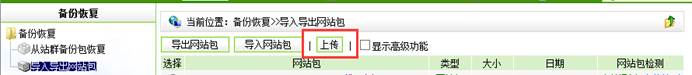 1. 如果此时站点里没有备份包,通过“上传”可将本地备份包上传到站点,如图4.1所示。